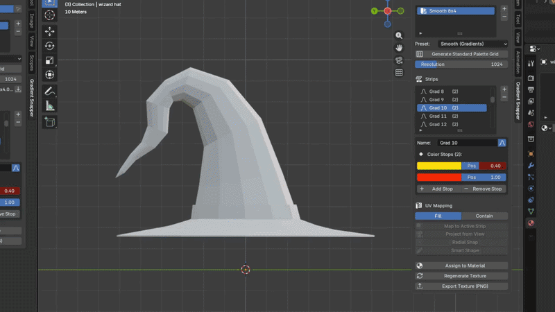 Gradient Snapper is a Blender add-on (4.0+) that brings palette-based texturing into your 3D workflow. Instead of jumping between external tools, you build gradient palettes, generate texture atlases, and map UVs — all without leaving Blender.