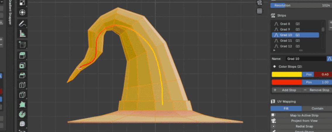 Smart Shape UV Draw a stroke directly on your mesh in the viewport. Gradient Snapper reads the stroke direction and maps your UVs along it — completely freehand, completely intuitive.